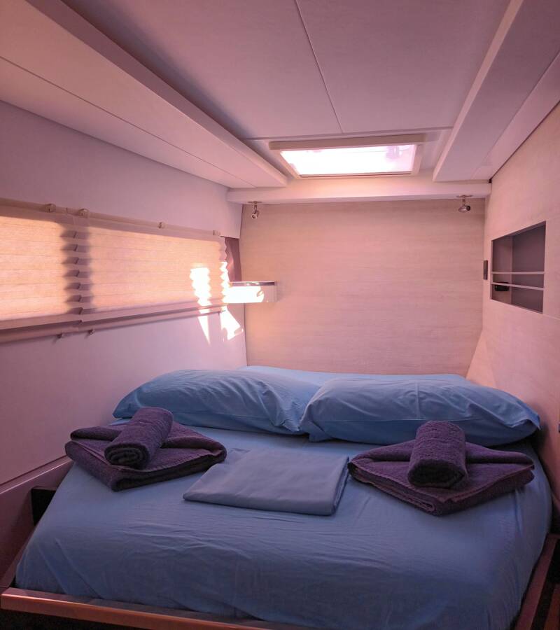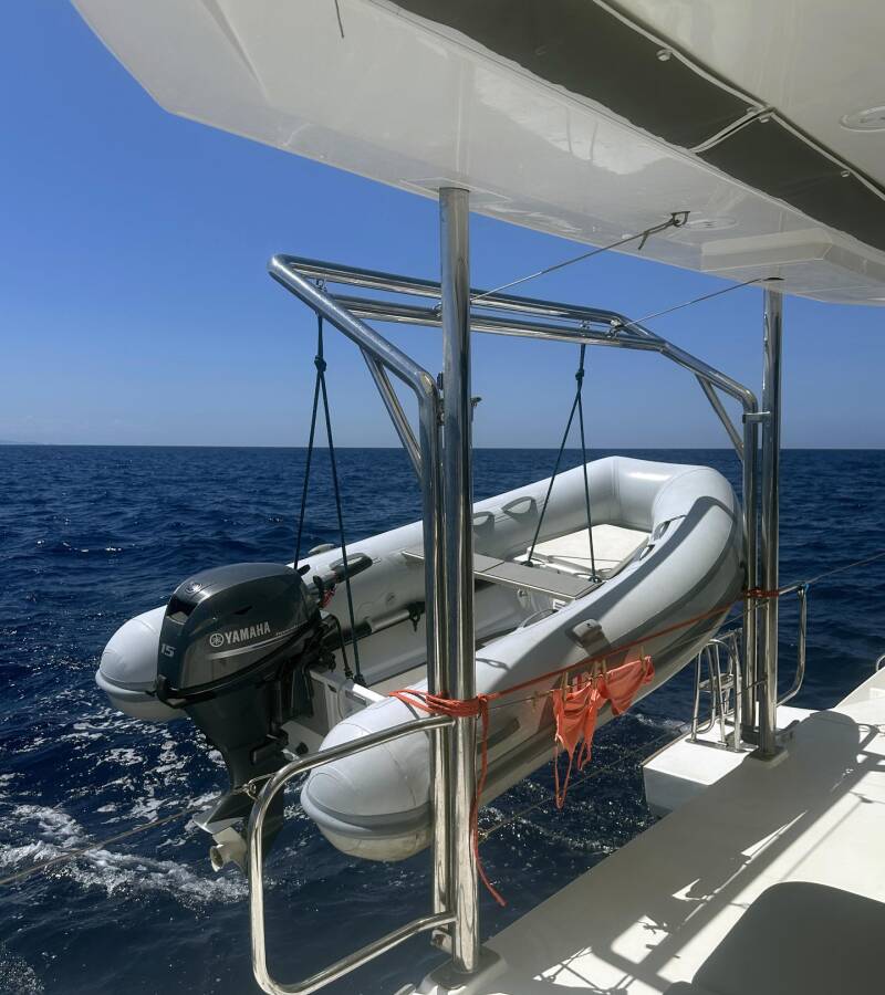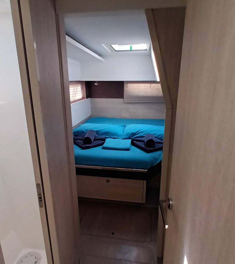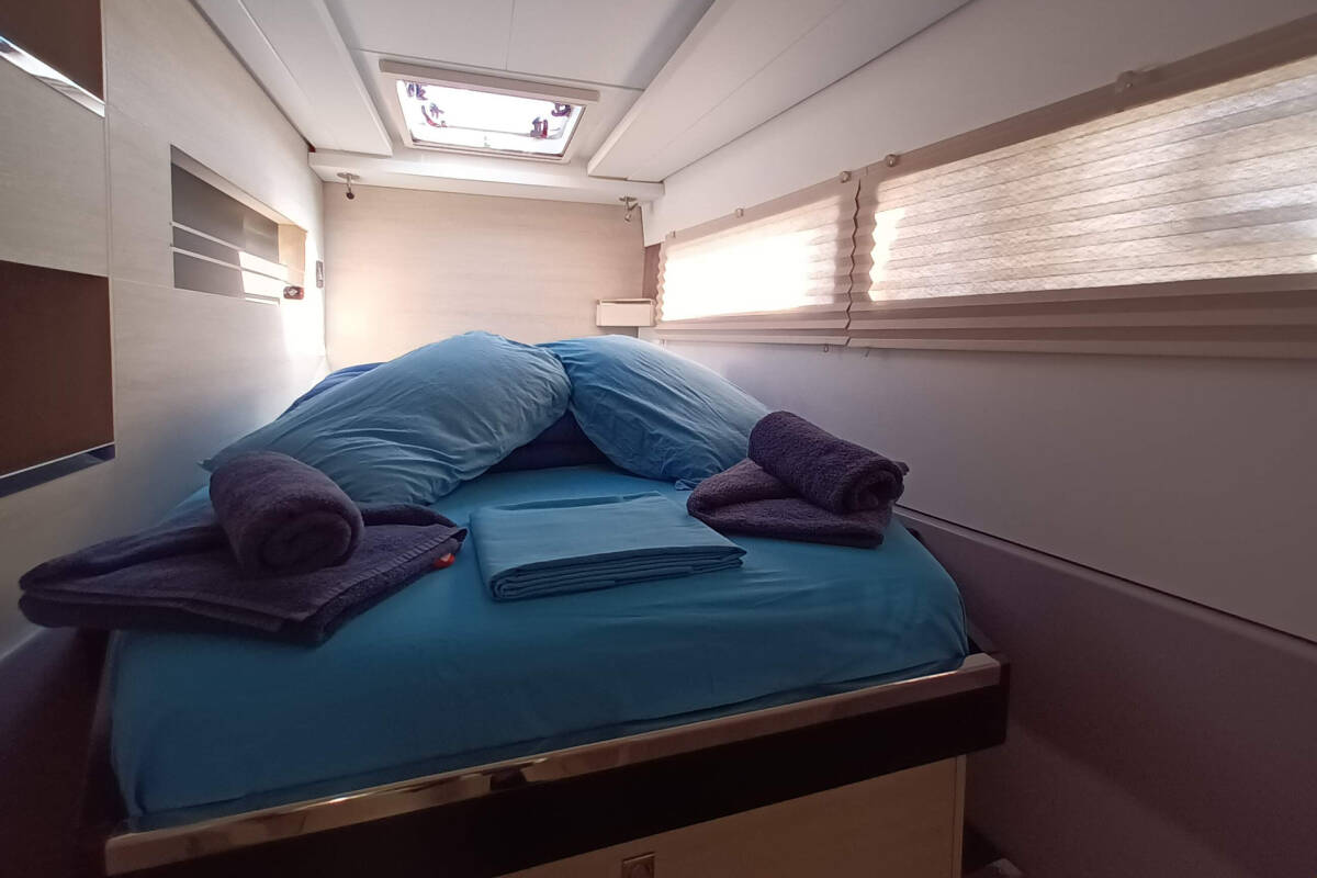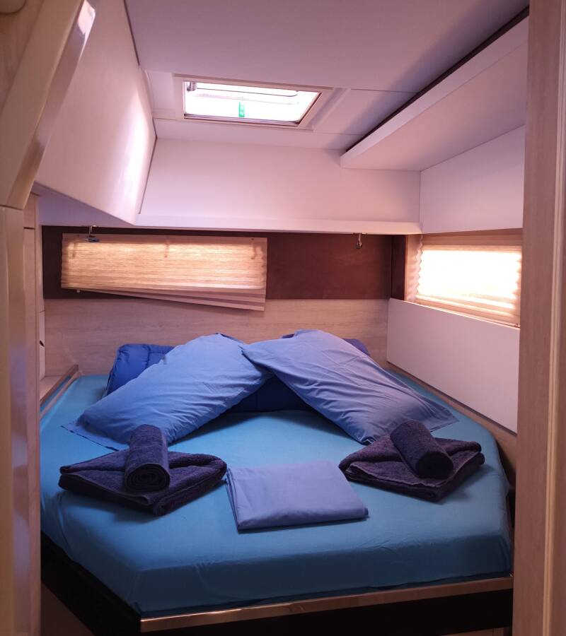 Elvstrøm mainsail new 2025 (5 battens and 2 reefing lines), Elvstrøm furling genoa new 2025, anchor chain 75 m, air conditioning in all cabins and in the saloon 2x Cruisair 220V - 16,000 BTU, fans in the saloon and in the cabins, Dometic heating, hot water boiler 2 tanks of 46 L each, watermaker, oven/stove 3-burner with oven and grill, Vitrifrigo refrigerator 212 L, freezer compartment, inverter, generator Northern Lights 9 kW (1760 h), bimini hardtop, sprayhood removable at the helm, solar panels 2x Sunware, cockpit shower hot/cold, electric davits stainless steel, dinghy with rigid keel and two oars, Skipper's wet room with toilet and shower, outboard motor, 2 electric winches, cockpit speakers. Dinghy Highfield CL 340 or UL 340 (3.4 m length) and Yamaha 15 hp outboard engine. Pets are not allowed.