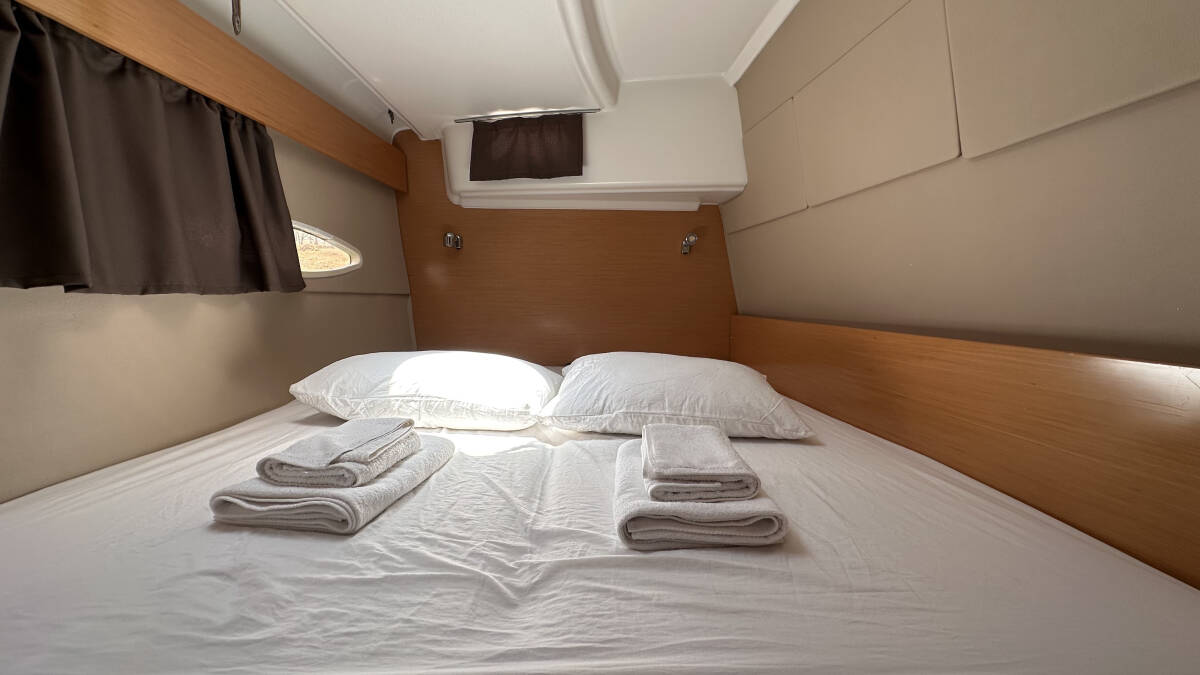 The Lipari 41 „Mirada“ offers special comfort with the following equipment features: Air Conditioning, Freezer, Cockpit cushions, Bathing platform, Inverter, Electric toilet, Solar panels.