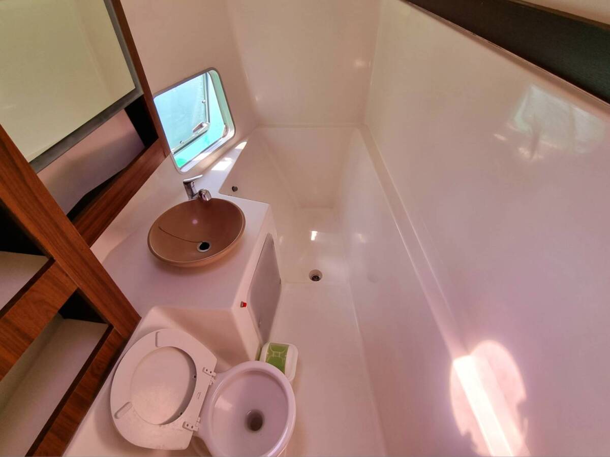 The Catamaran Mahe 36 „Happy Eva“, built in 2013, is moored in Phuket, Yacht Haven Marina - Thailand . The yacht has 3 cabins, can accomodate 6 persons and has 1 toilets/showers.