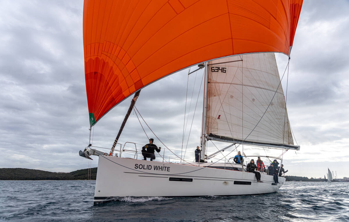 The More 55 „Solid White“ is equipped with a mainsail and a genoa as well as a Bimini top, Autopilot, Sprayhood, Heating, Teak cockpit, GPS chart plotter - cockpit.