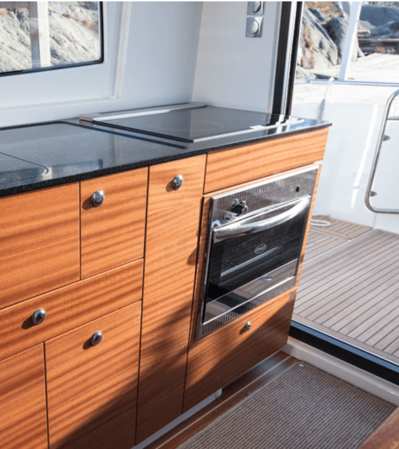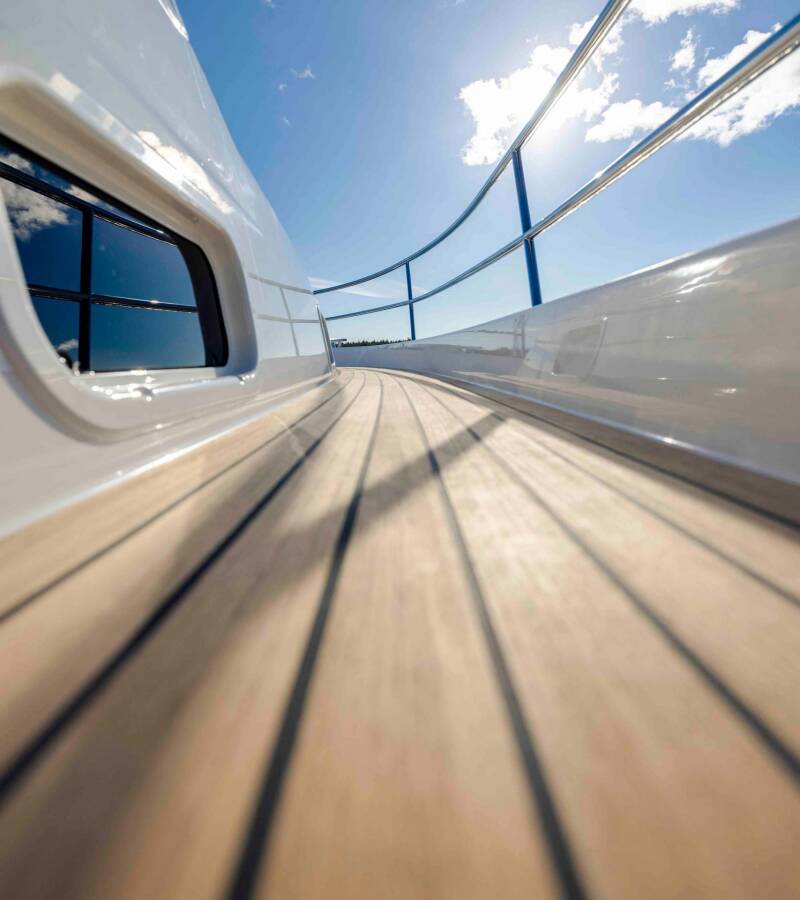 A stylish accent is set by Teak deck, Underwater lights.