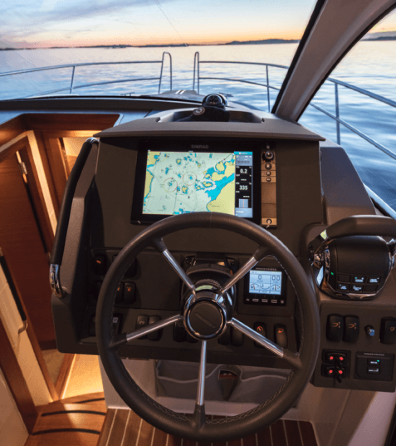 The Nimbus 365 Coupe „Fourlux“ is equipped with a Autopilot, Teak cockpit.