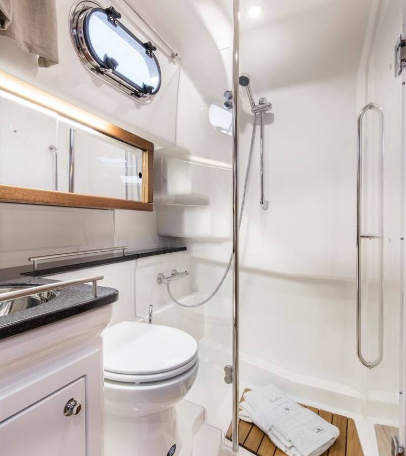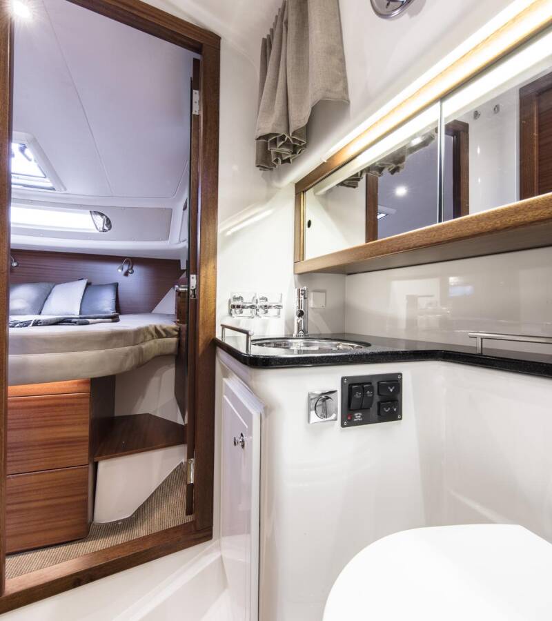 The Nimbus 365 Coupe „Fourlux“ offers special comfort with the following equipment features: Bow thruster, Cockpit cushions, Electric toilet.