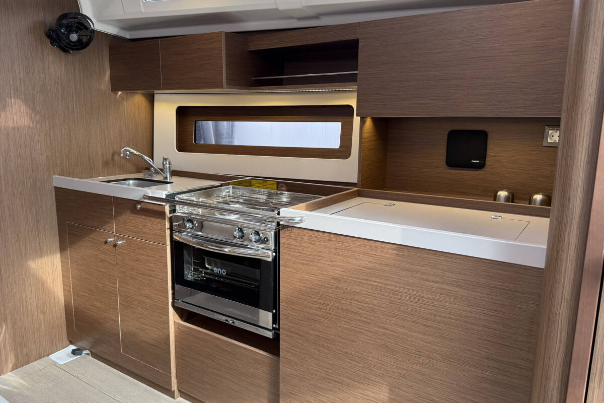 The Oceanis 37.1 „Agios“ offers special comfort with the following equipment features: Bow thruster, Cockpit cushions, Bathing platform, Inverter, Solar panels.