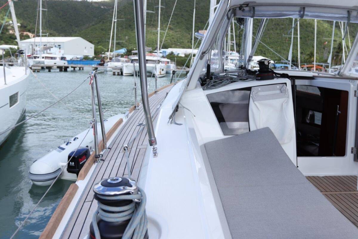 The Oceanis 38.1 „Arun“ is equipped with a mainsail and a genoa as well as a Bimini top, Autopilot.