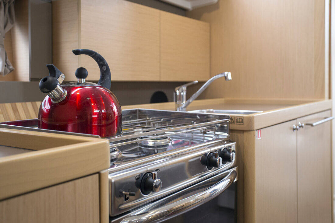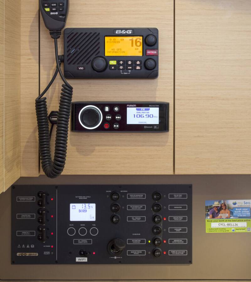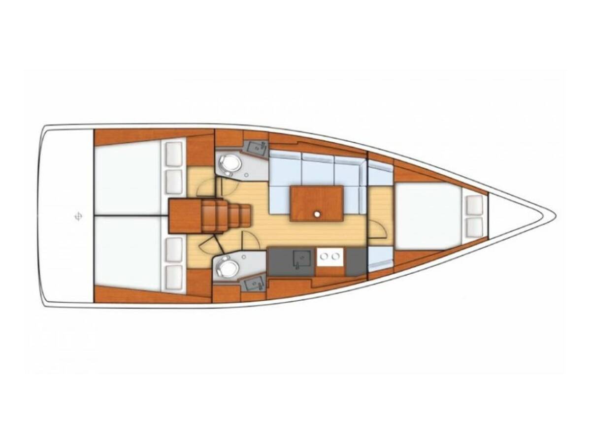 The Oceanis 38.1 „Bellagio“ is equipped with a mainsail and a genoa as well as a Bimini top, Autopilot, Sprayhood, Heating, Teak cockpit, GPS chart plotter - cockpit.