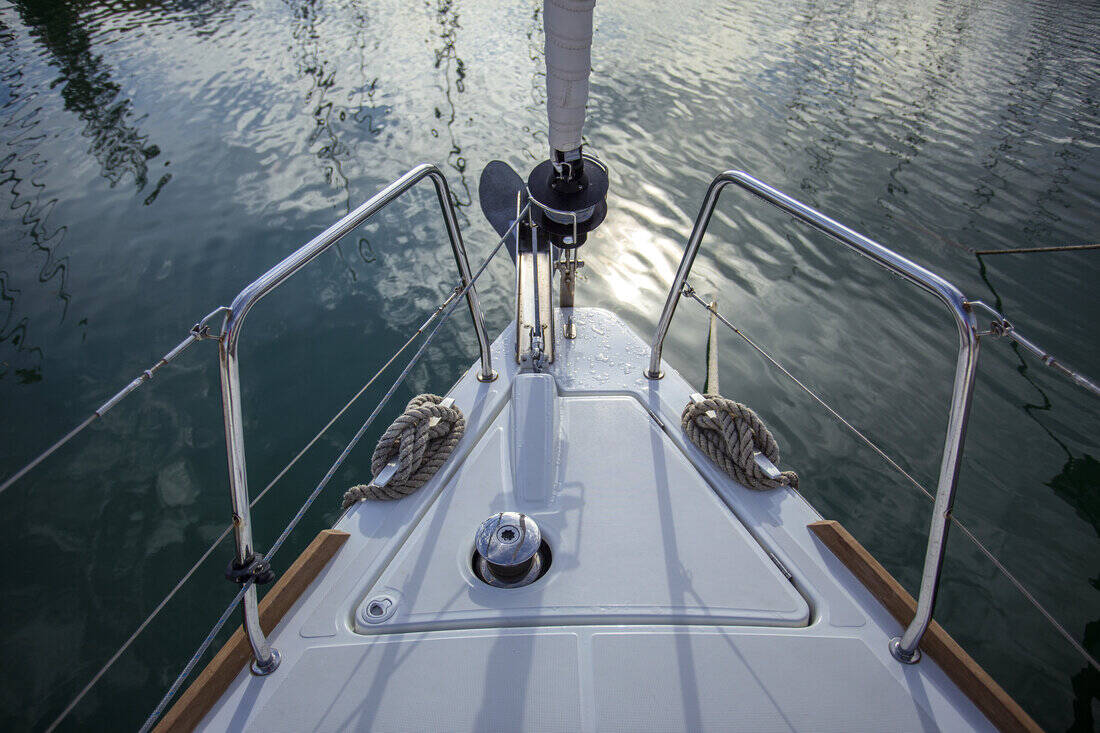 The Oceanis 38.1 „Bellagio“ offers special comfort with the following equipment features: Bow thruster, Cockpit cushions, Bathing platform, Inverter, Solar panels.