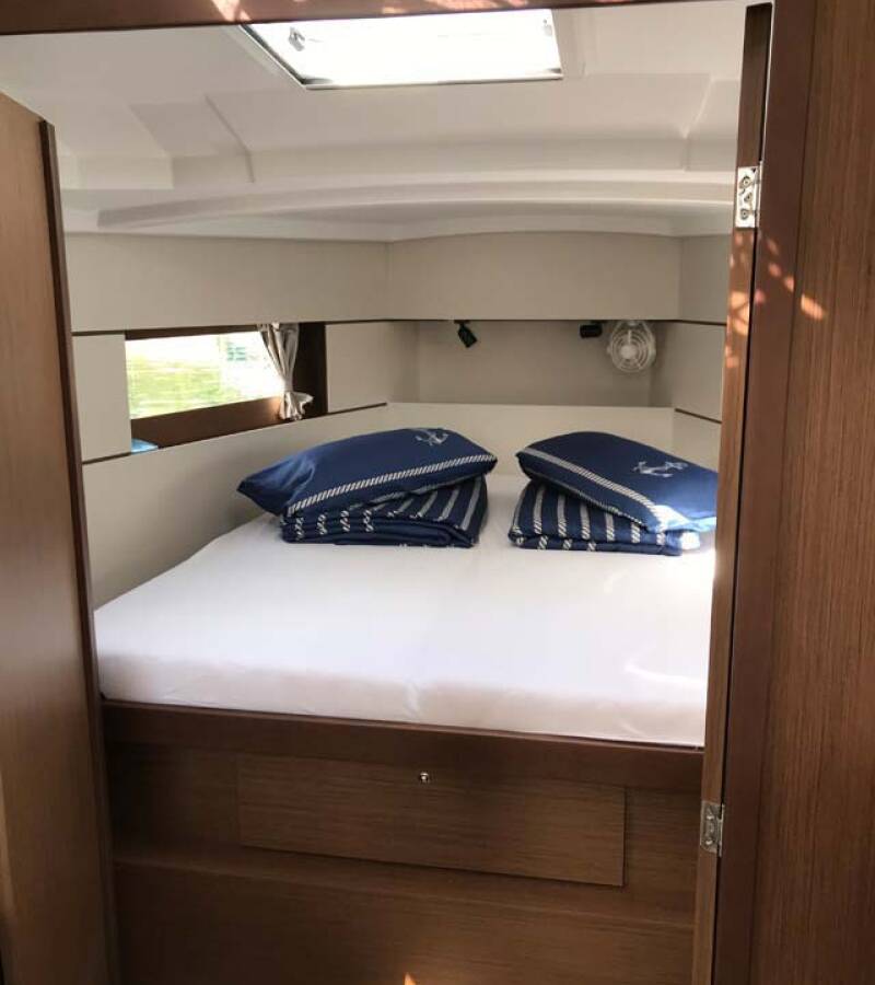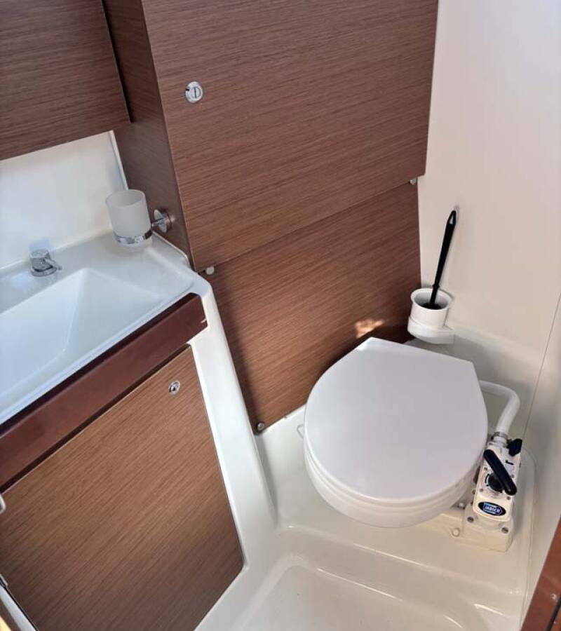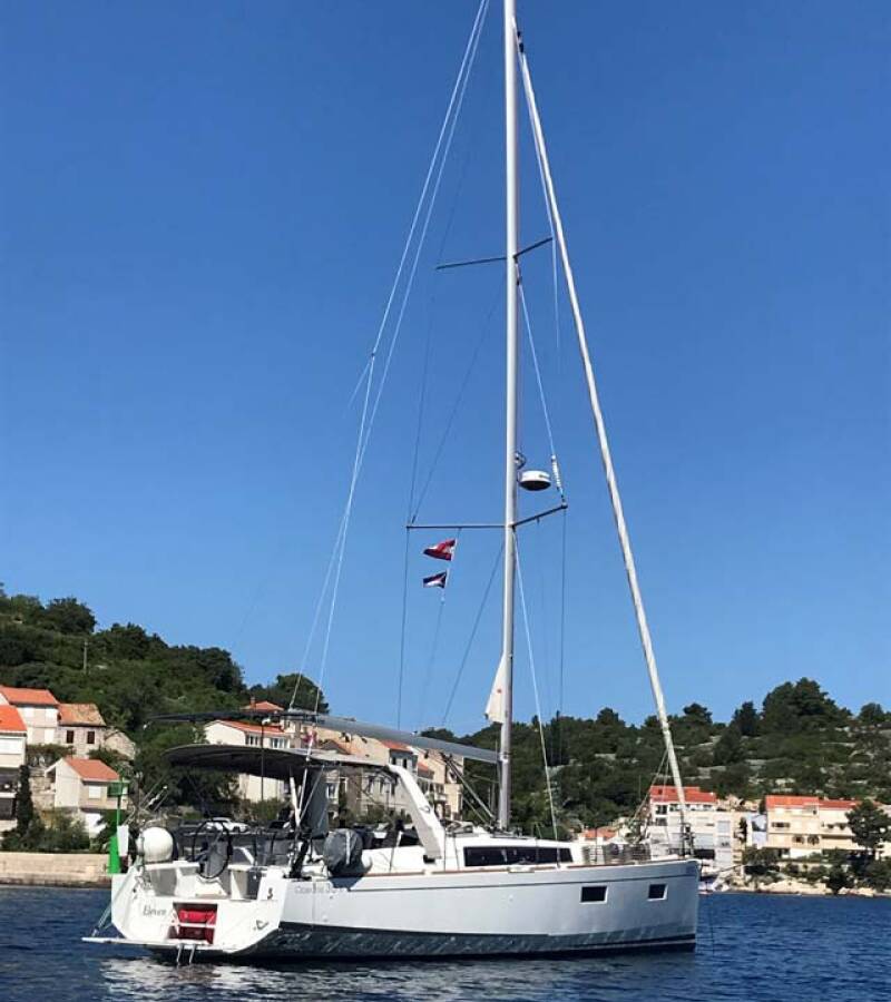 The Oceanis 38.1 „Eleven“ offers special comfort with the following equipment features: Bow thruster, Cockpit cushions, Electric toilet, Solar panels.