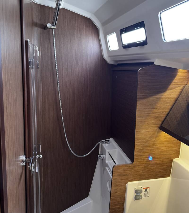 The Oceanis 40.1 „Bruna“ offers special comfort with the following equipment features: Bow thruster, Cockpit cushions, Bathing platform, Inverter, Electric toilet, Solar panels.