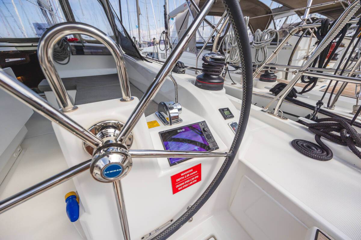 The Oceanis 40.1 „Elma“ is equipped with a mainsail and a genoa as well as a Bimini top, Autopilot, Sprayhood, GPS chart plotter - cockpit.