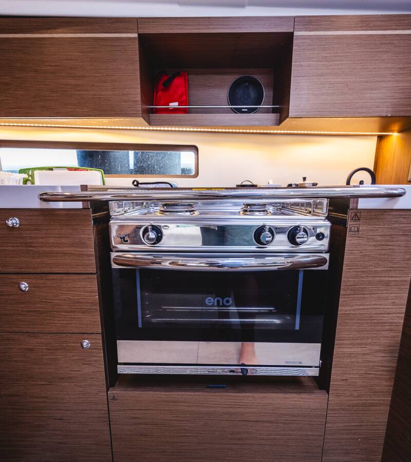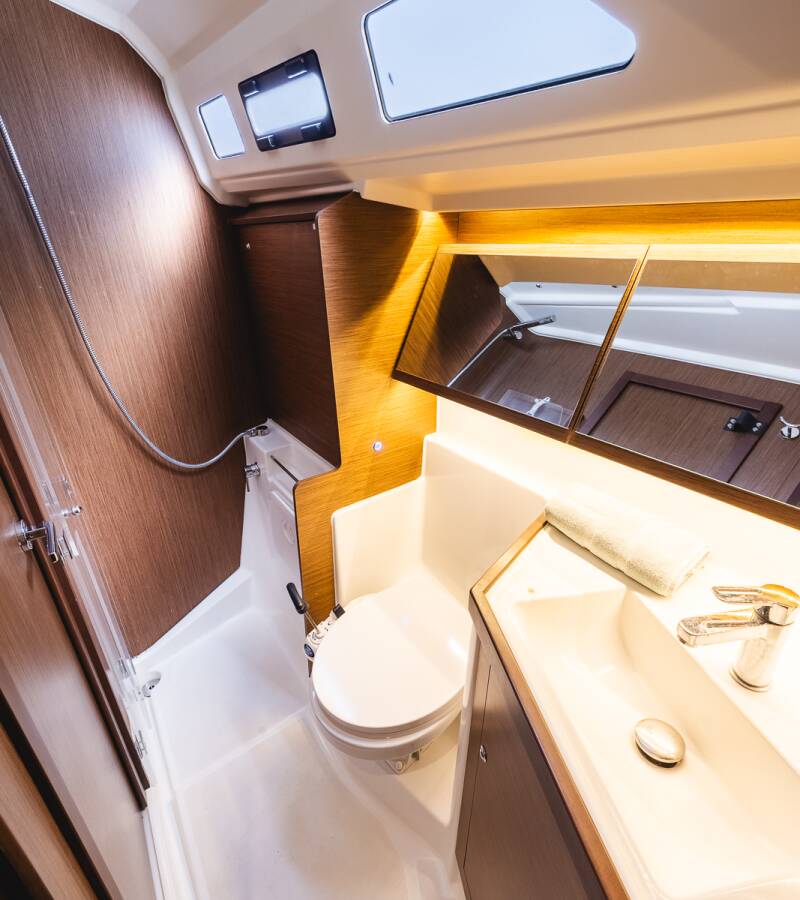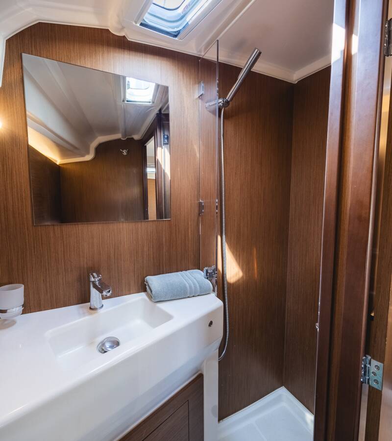 The Oceanis 40.1 „Elma“ offers special comfort with the following equipment features: Bow thruster, Air Conditioning, Bathing platform, Solar panels.