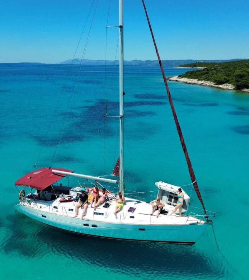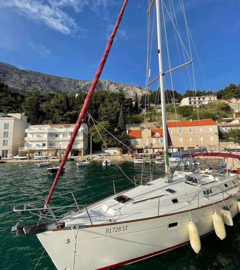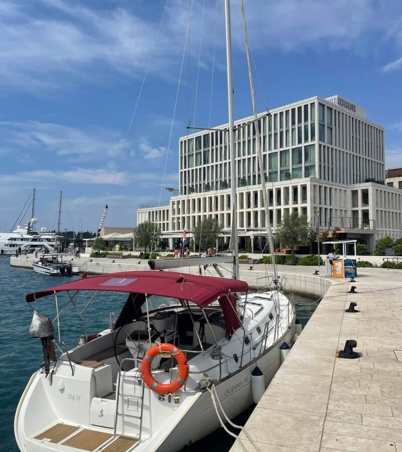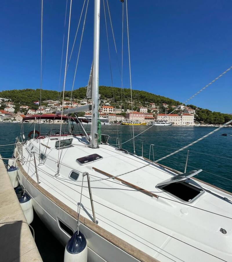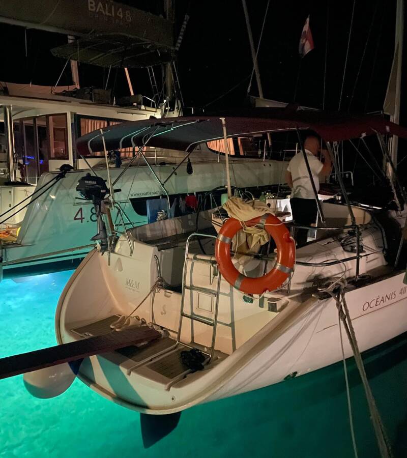 The Oceanis 411 Celebration „M&M“ offers special comfort with the following equipment features: Bow thruster, Freezer, Bathing platform, Inverter.