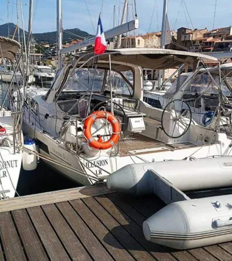 The Oceanis 41.1 „Illusion“ offers special comfort with the following equipment features: Bow thruster, Cockpit cushions, Electric toilet, Solar panels.