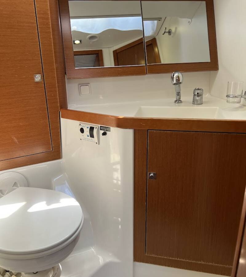 The Oceanis 45 „Beautiful Love“ offers special comfort with the following equipment features: Bow thruster, Electric toilet, Solar panels.
