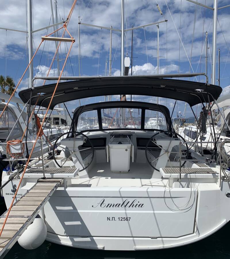 The Oceanis 46.1 „Amalthia“ offers special comfort with the following equipment features: Bow thruster, Cockpit cushions, Solar panels.