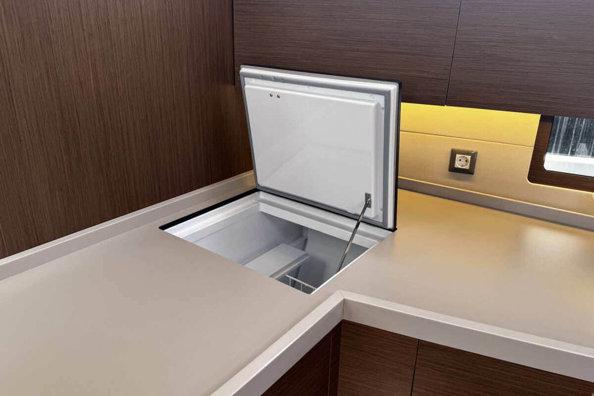 The Oceanis 46.1 „Artemis“ offers special comfort with the following equipment features: Bow thruster, Freezer, Cockpit cushions, Bathing platform, Inverter, Electric toilet, Solar panels.