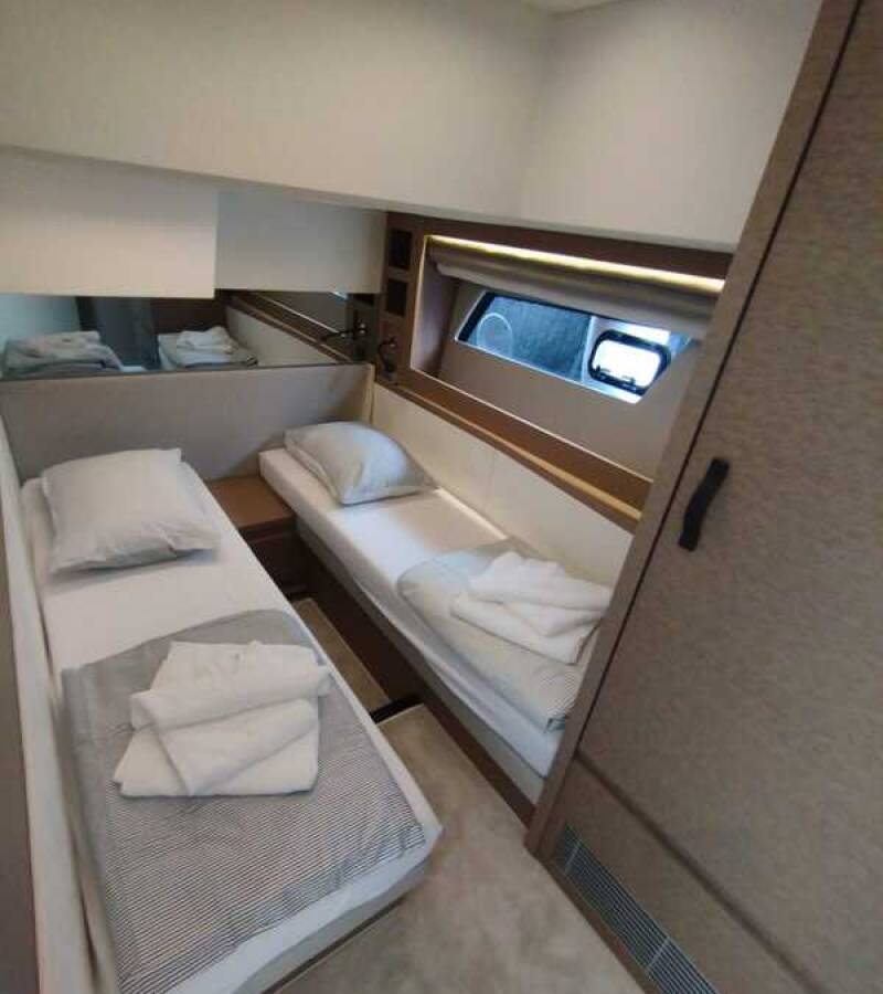 The Prestige 520 Flybridge „Baby Indy“ offers special comfort with the following equipment features: Bow thruster, Generator, Air Conditioning, Inverter, Dishwasher.