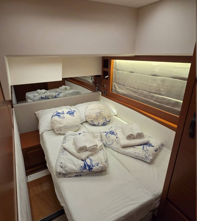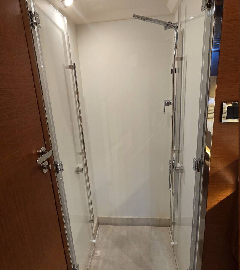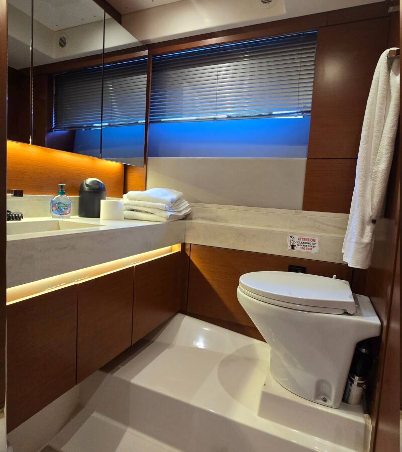 The Prestige 520 Flybridge „Medusa“ offers special comfort with the following equipment features: Bow thruster, Generator, Air Conditioning, Freezer, Cockpit cushions, Washing machine, Bathing platform, Inverter, Dishwasher.