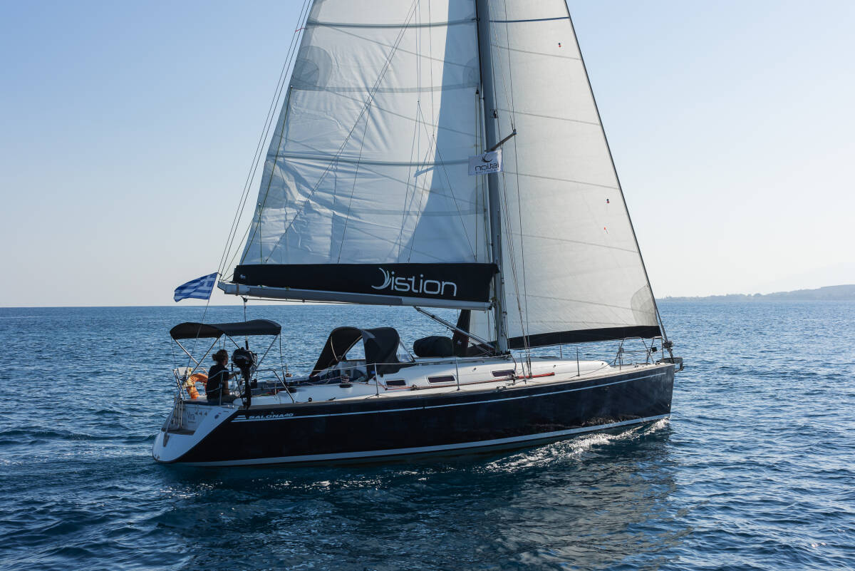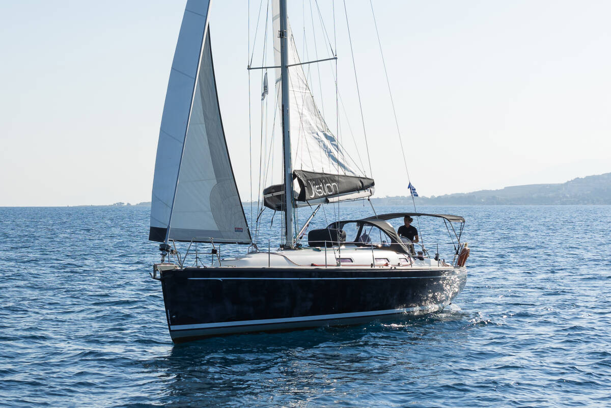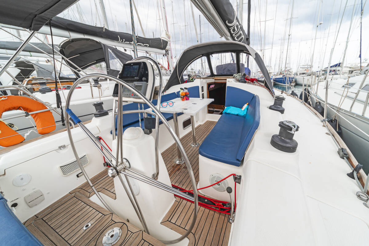 The Salona 40 „Vira“ is equipped with a mainsail and a genoa as well as a Bimini top, Autopilot, Sprayhood, Teak cockpit, GPS chart plotter - cockpit.