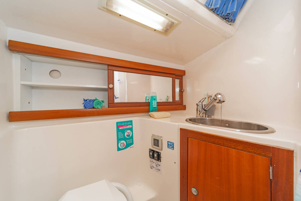 The Salona 40 „Vira“ offers special comfort with the following equipment features: Bow thruster, Electric toilet.