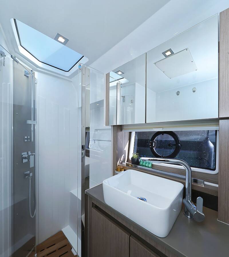 The Sealine C390 „Tireless“ offers special comfort with the following equipment features: Bow thruster, Generator, Air Conditioning, Bathing platform, Inverter, Electric toilet.
