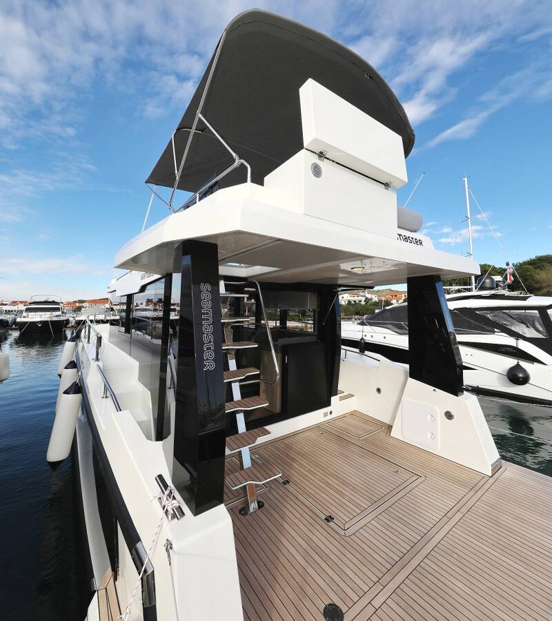 The Seamaster 45 „Mackata“ is equipped with a Bimini top, Autopilot, Heating.