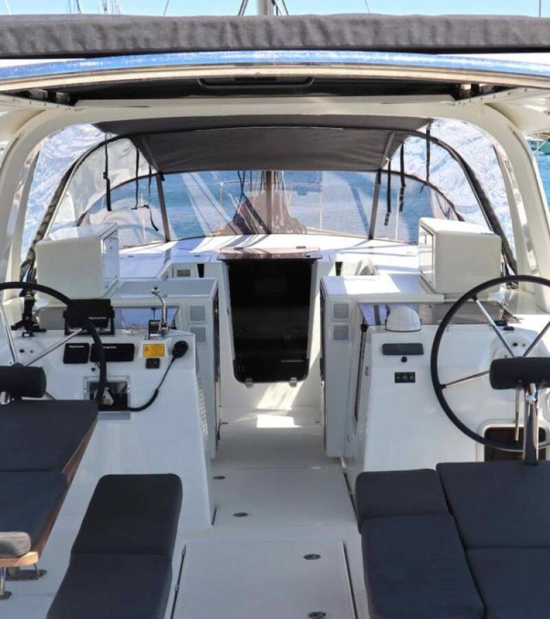 The Sun Loft 47 „Sun Rise II“ is equipped with a mainsail and a genoa as well as a Bimini top, Autopilot, Sprayhood, GPS chart plotter - cockpit.