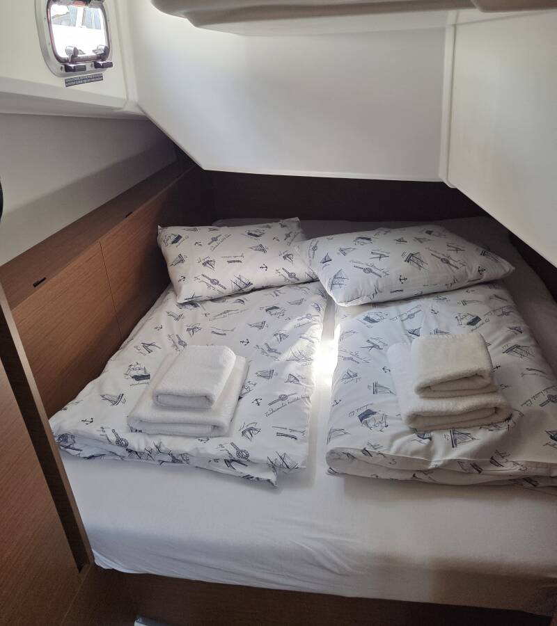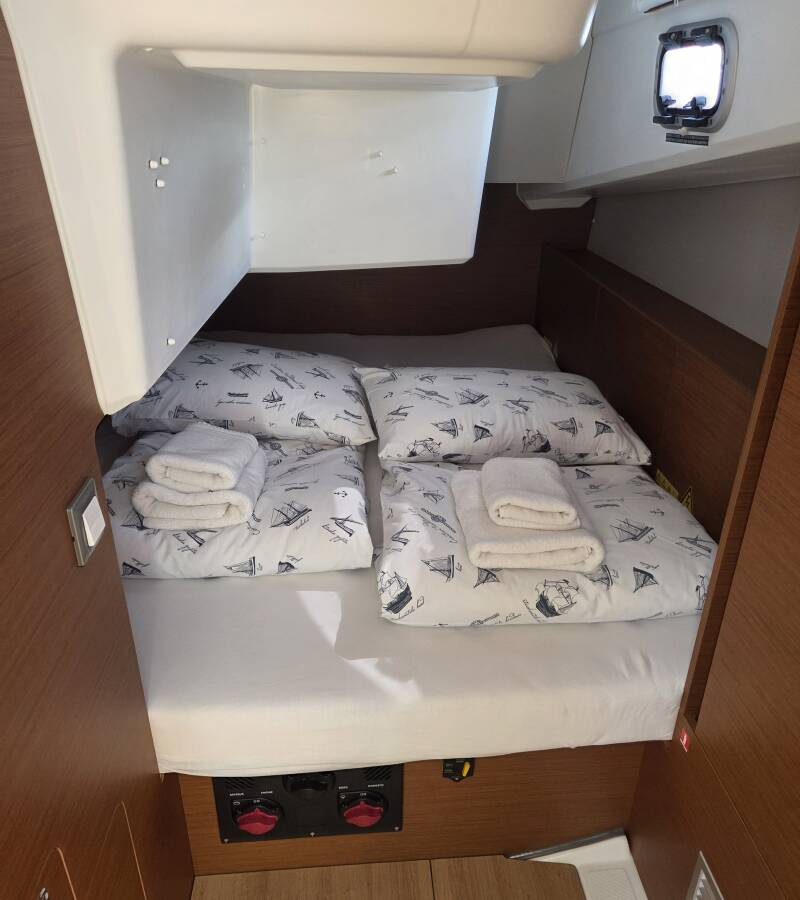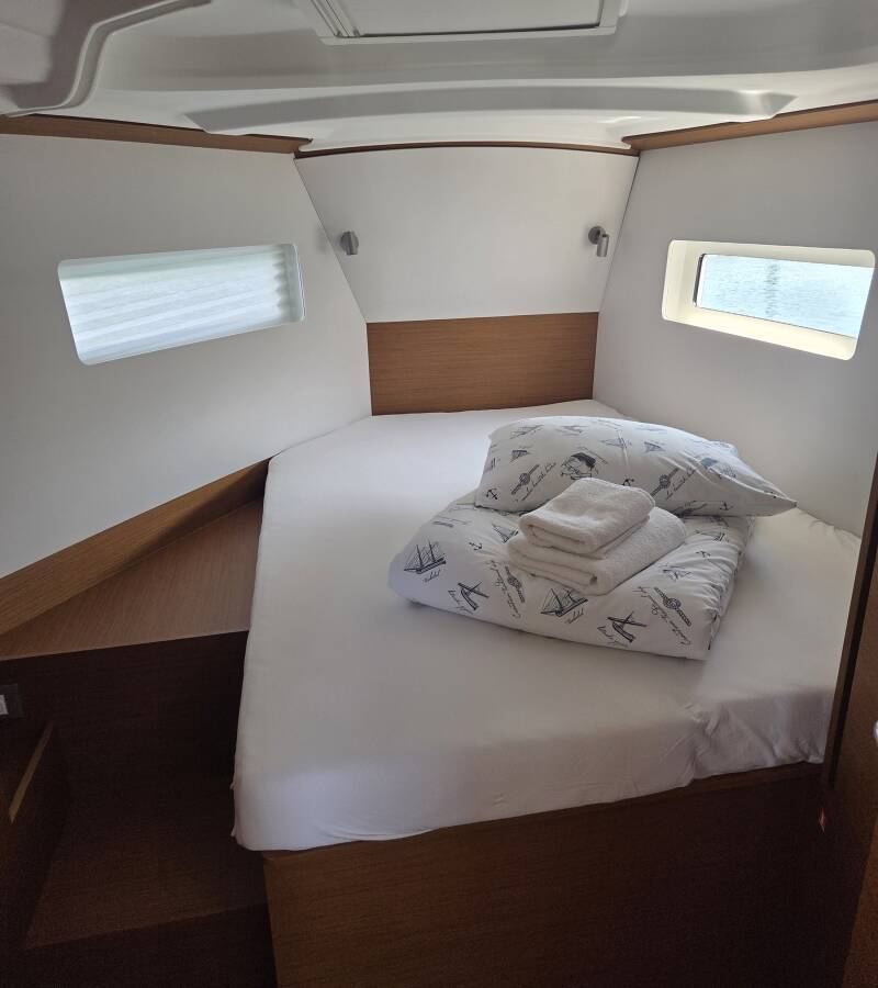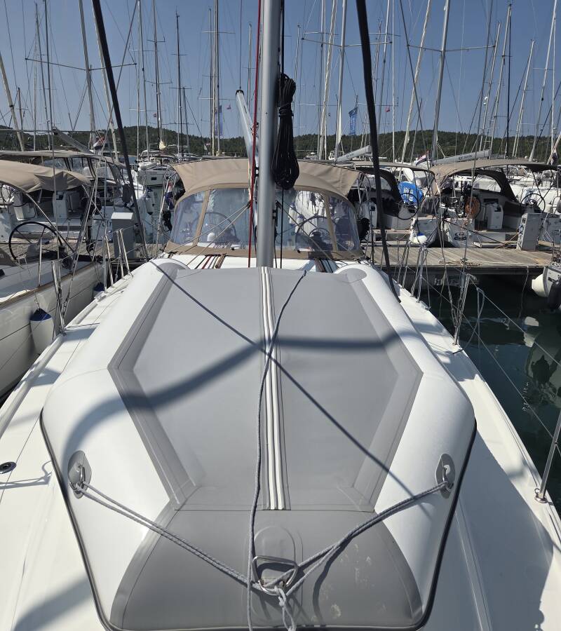 The Sun Odyssey 380 „Ancsika“ offers special comfort with the following equipment features: Bow thruster, Cockpit cushions, Solar panels.