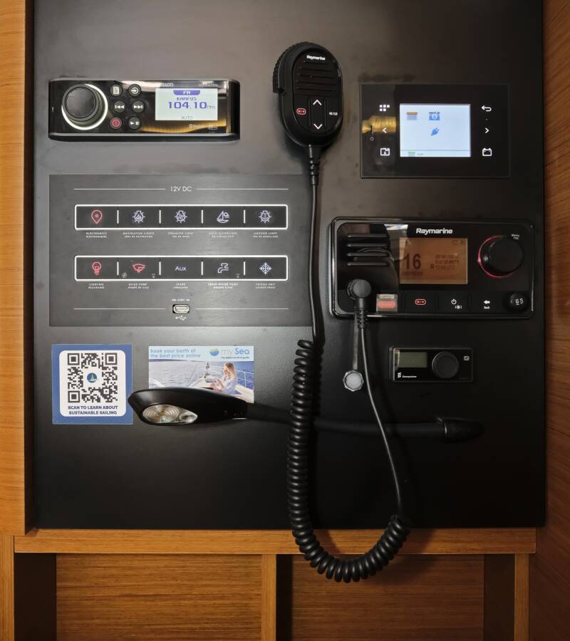The Sun Odyssey 380 „Sea Kiss“ offers special comfort with the following equipment features: Bow thruster, Cockpit cushions, Solar panels.