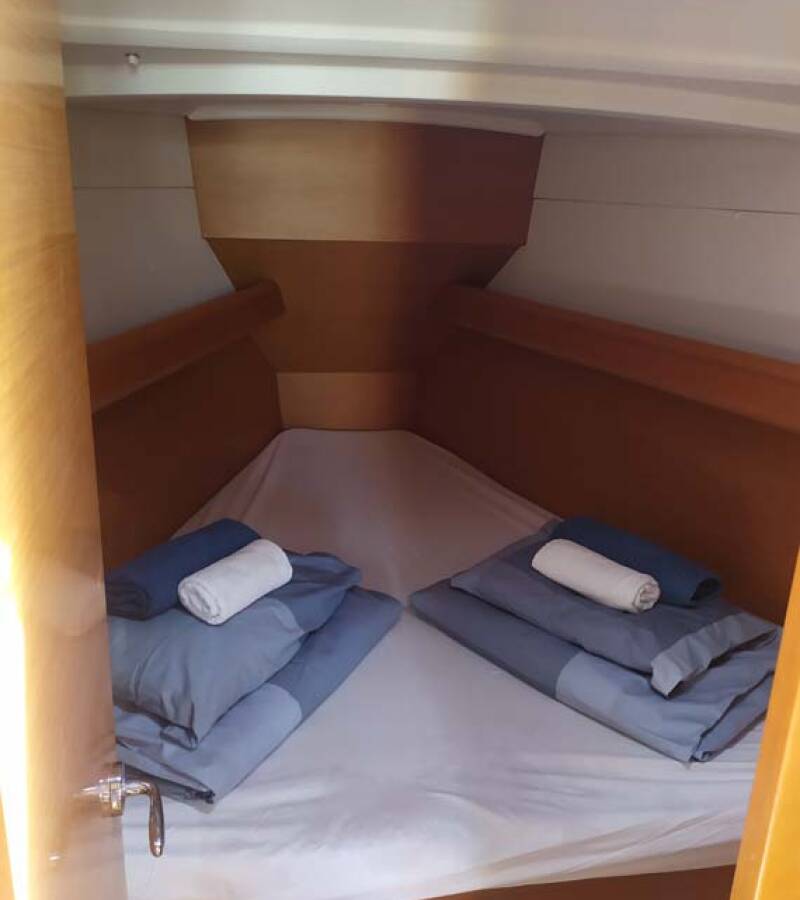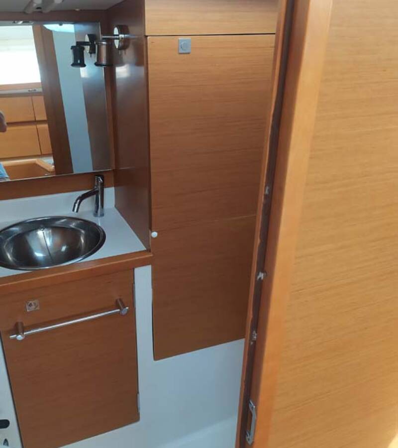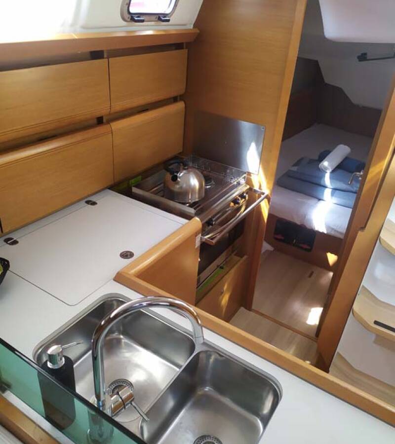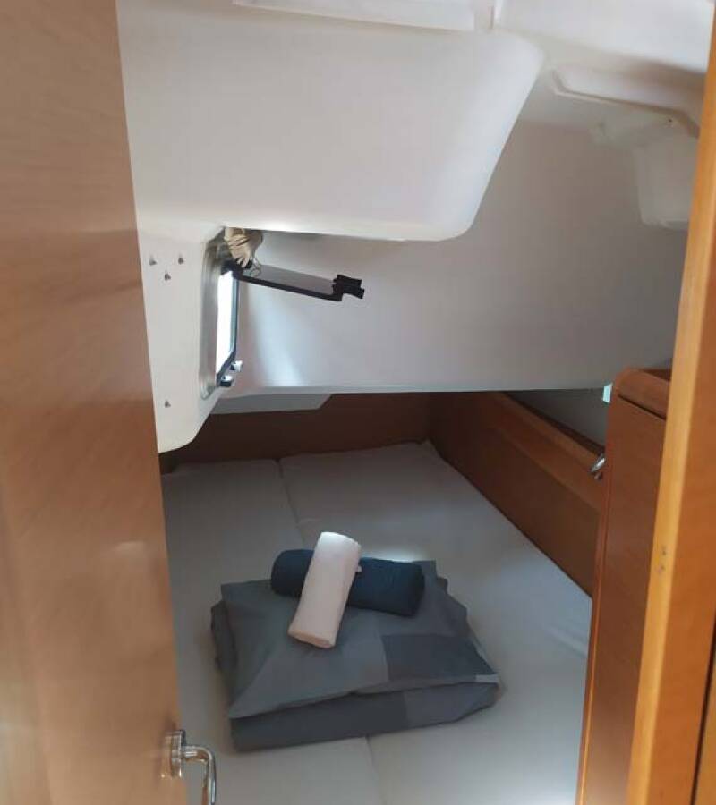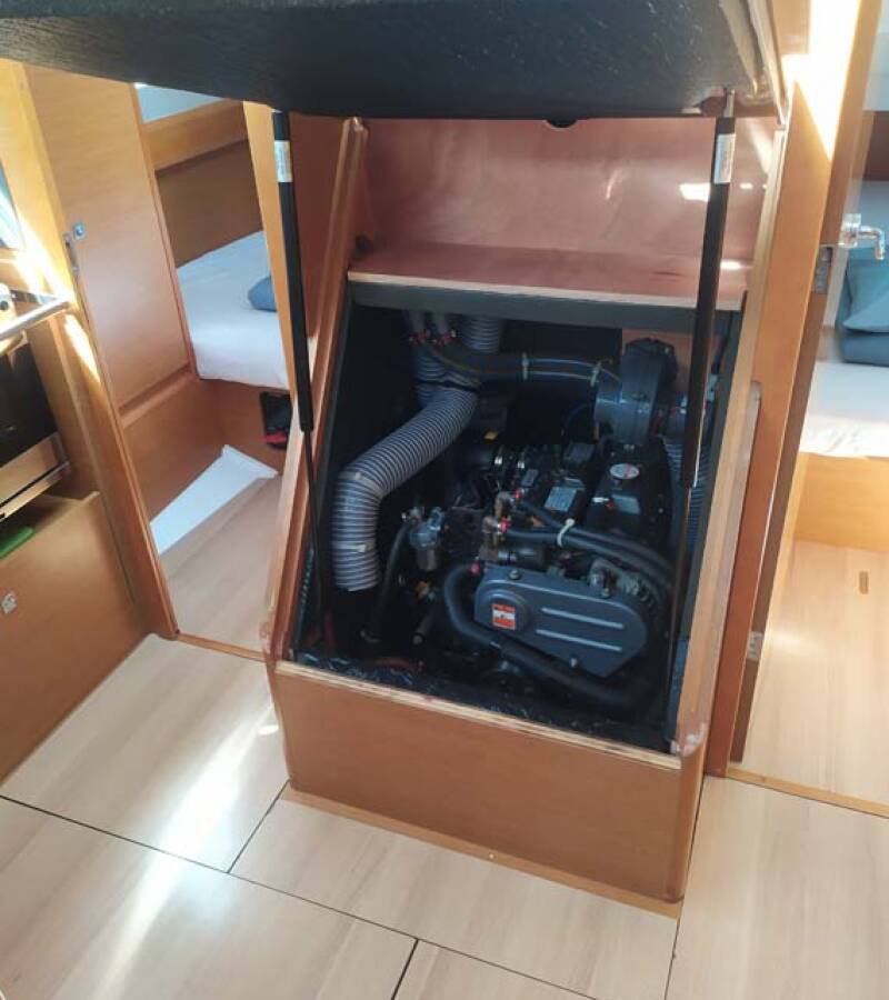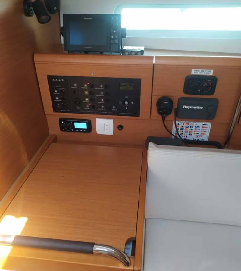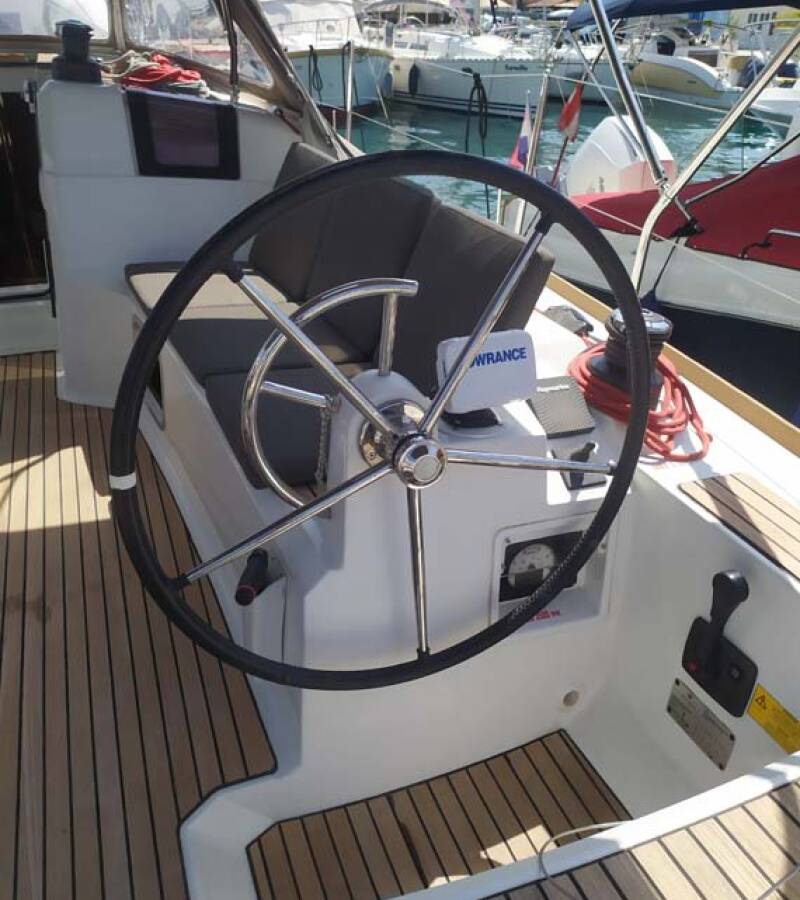 The Sun Odyssey 389 „živjelli“ offers special comfort with the following equipment features: Bow thruster, Freezer, Bathing platform, Inverter.