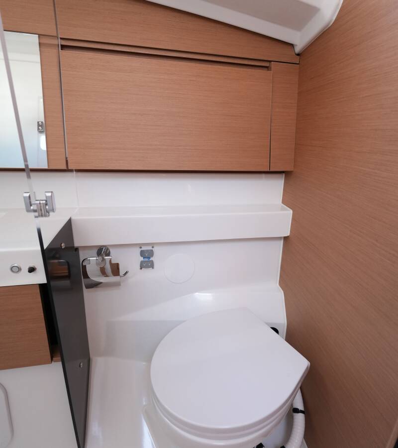 The Sun Odyssey 410 „Colibri“ offers special comfort with the following equipment features: Bow thruster, Electric toilet.