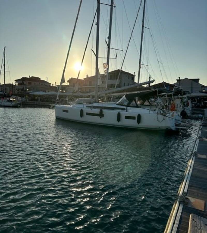 The Sailing yacht Sun Odyssey 440 „Ecstasea“, built in 2023, is moored in Lefkas main port - Greece. The yacht has 4 cabins, can accomodate 8 persons and has 2 toilets/showers.