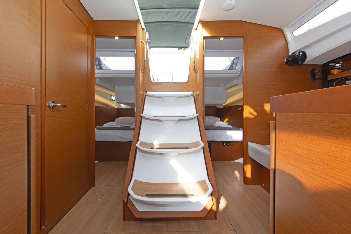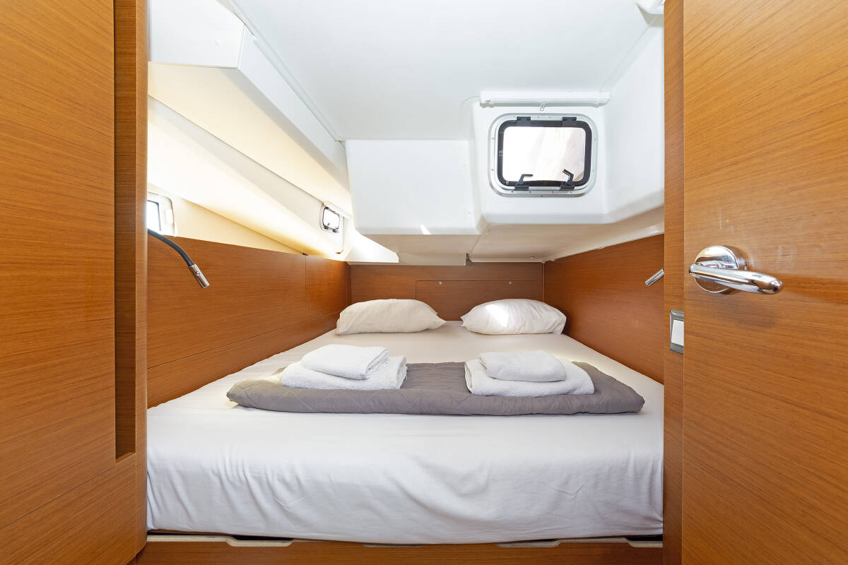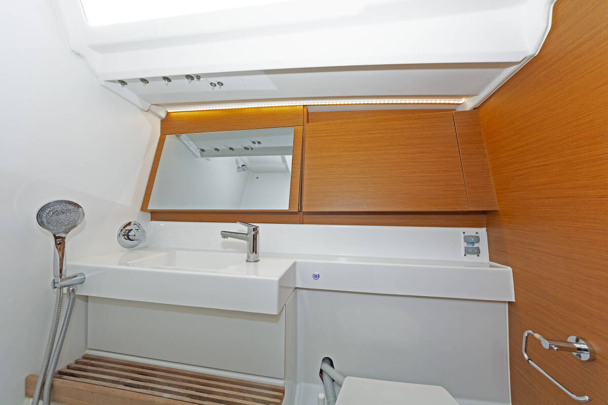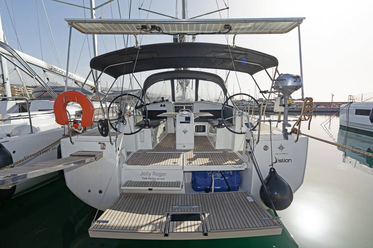 The Sun Odyssey 440 „JOLLY ROGER“ offers special comfort with the following equipment features: Bow thruster, Cockpit cushions, Electric toilet, Solar panels.
