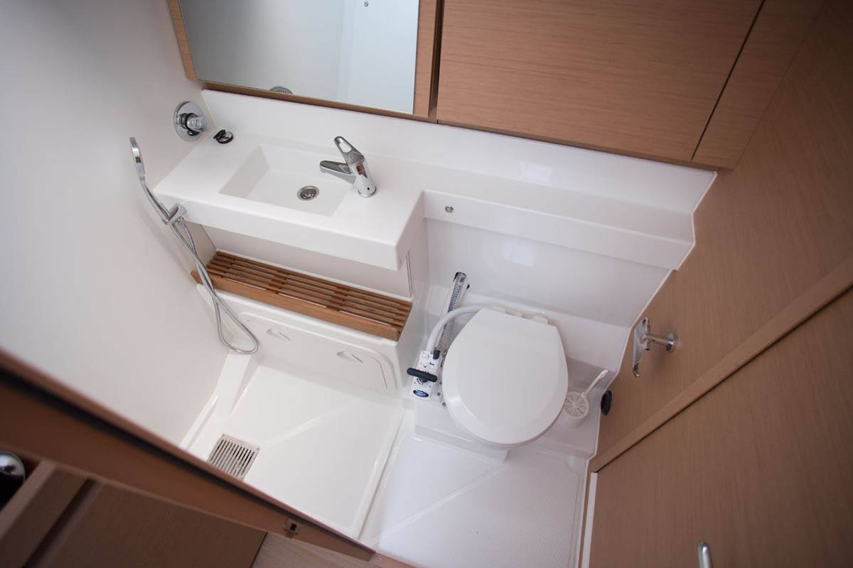 The Sun Odyssey 440 „La Baavca“ offers special comfort with the following equipment features: Bow thruster, Cockpit cushions, Bathing platform.
