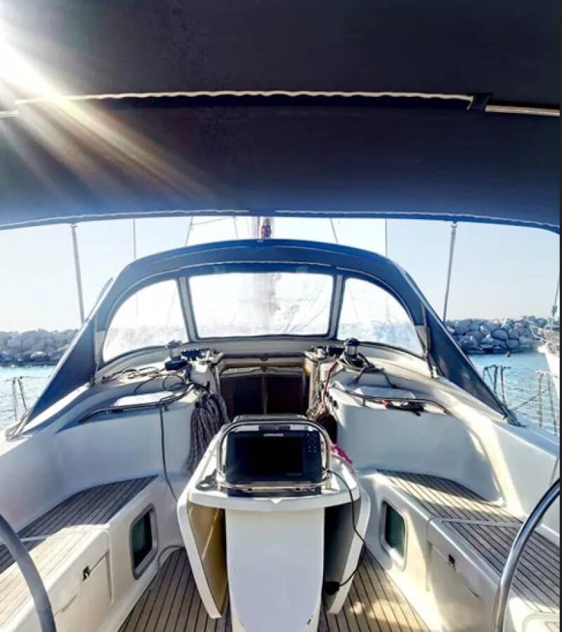 The Sun Odyssey 49 DS „Sunset“ is equipped with a mainsail and a genoa as well as a Bimini top, Autopilot, Sprayhood, GPS chart plotter - cockpit.