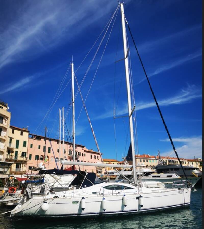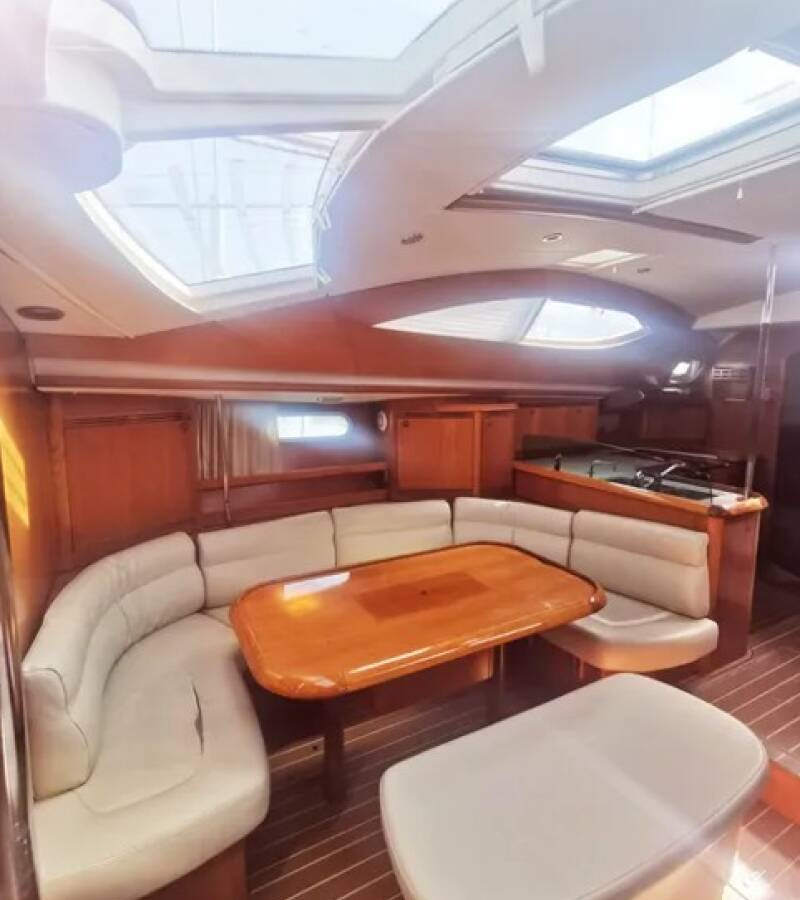 The Sun Odyssey 49 DS „Sunset“ offers special comfort with the following equipment features: Bow thruster, Inverter, Solar panels.