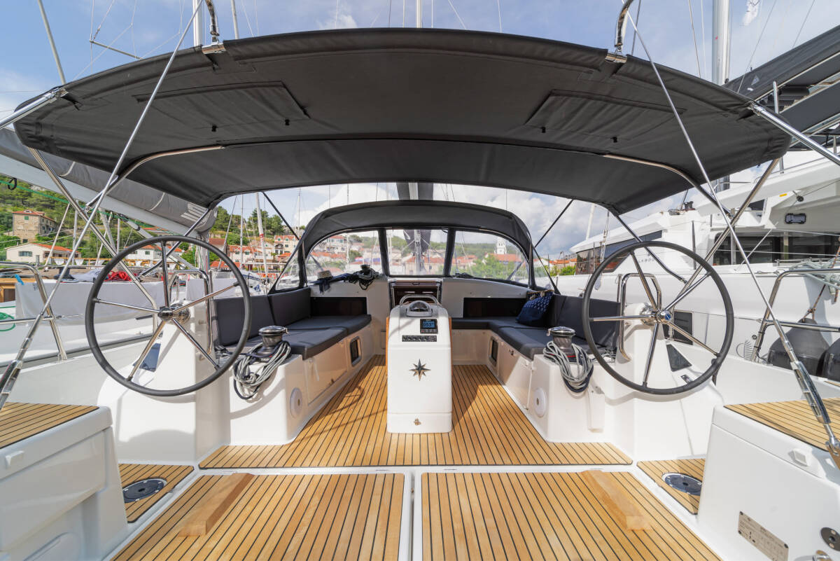 The Sun Odyssey 490 „First Ride“ offers special comfort with the following equipment features: Bow thruster, Cockpit cushions, Electric toilet, Solar panels.