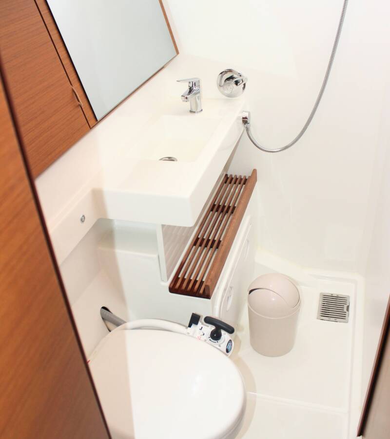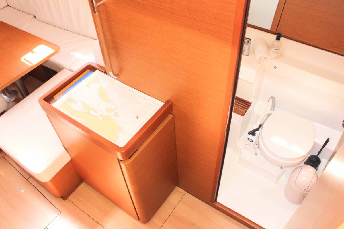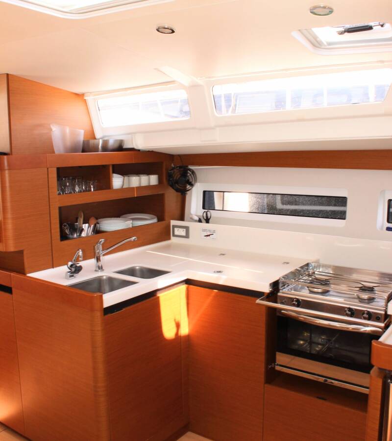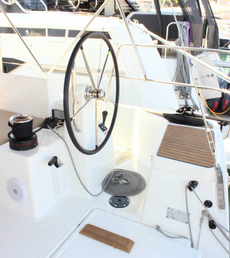 The Sun Odyssey 490 „None“ offers special comfort with the following equipment features: Bow thruster, Air Conditioning, Cockpit cushions, Bathing platform.