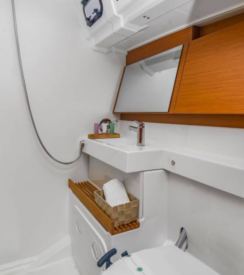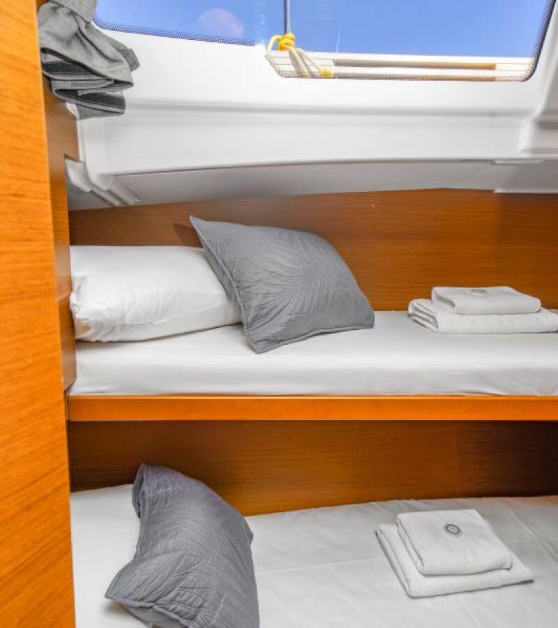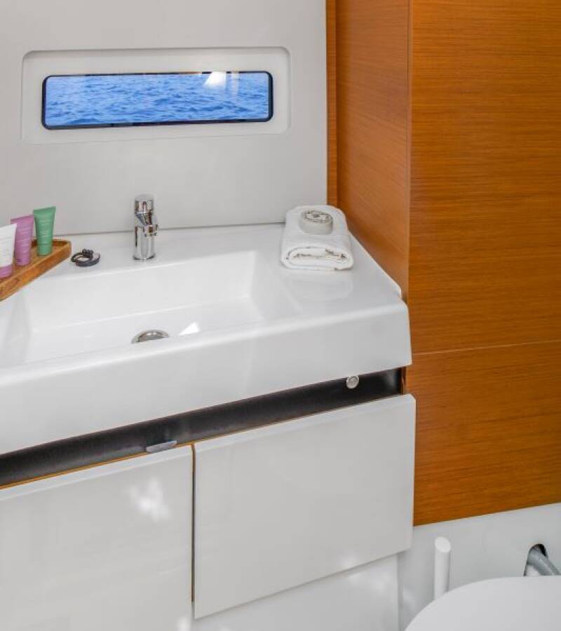 The Sun Odyssey 490 „Osejava“ offers special comfort with the following equipment features: Bow thruster, Generator, Air Conditioning.