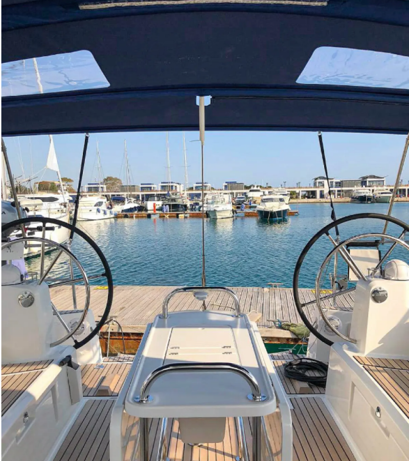 The Sun Odyssey 519 „Misty“ is equipped with a mainsail and a genoa as well as a Bimini top, Autopilot, Sprayhood, GPS chart plotter - cockpit.