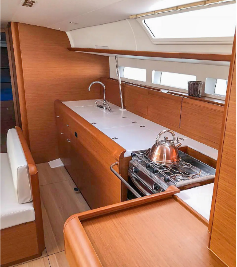 The Sun Odyssey 519 „Misty“ offers special comfort with the following equipment features: Bow thruster, Inverter, Electric toilet, Solar panels.