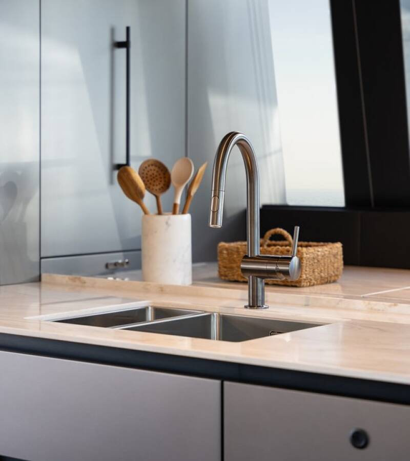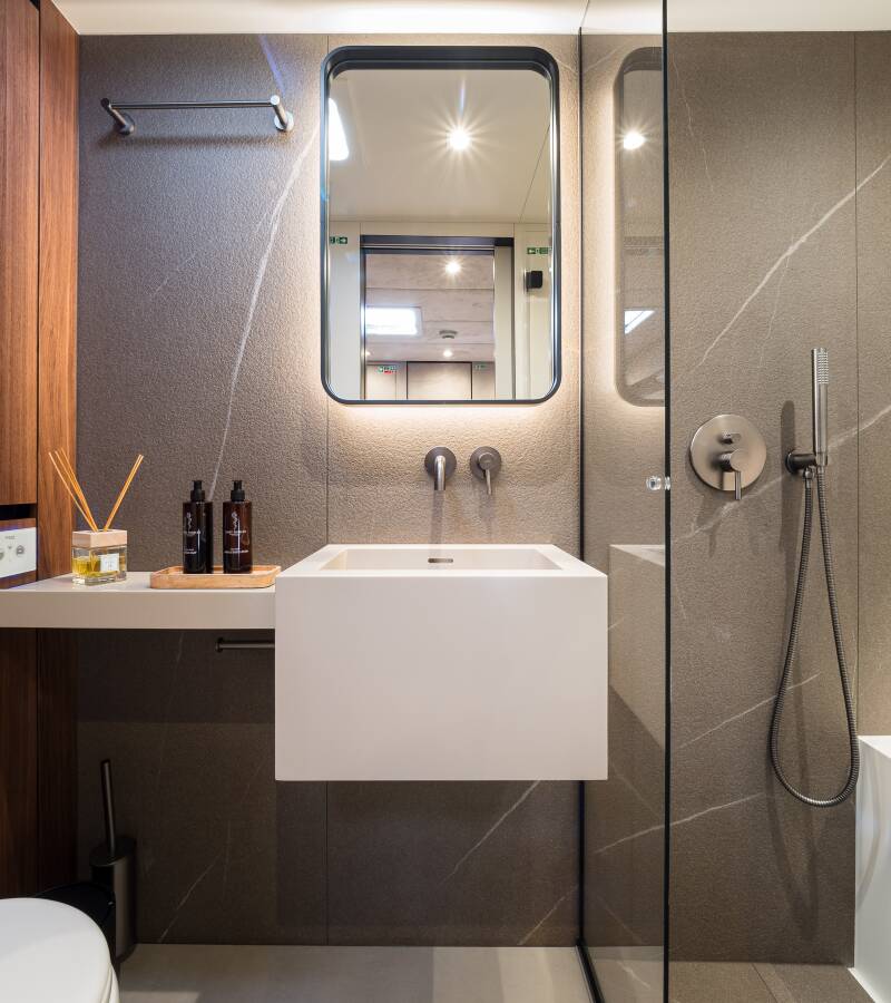 A stylish accent is set by Watermaker - desalinator, Teak deck.