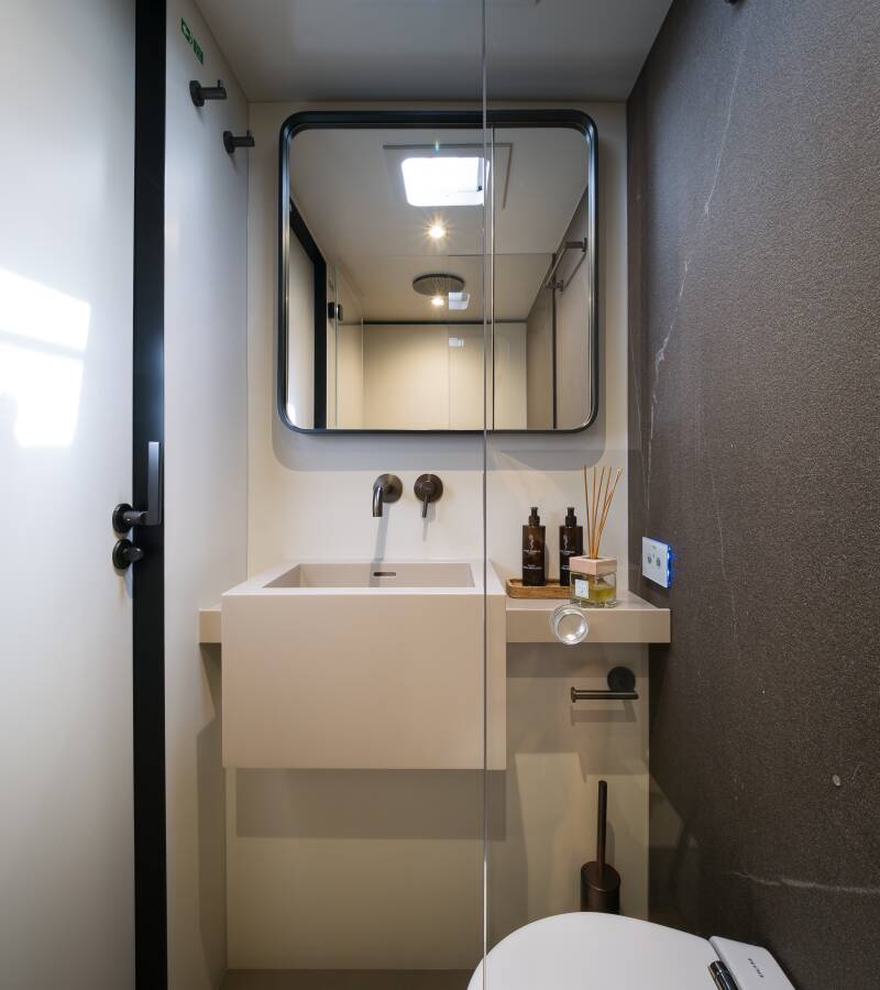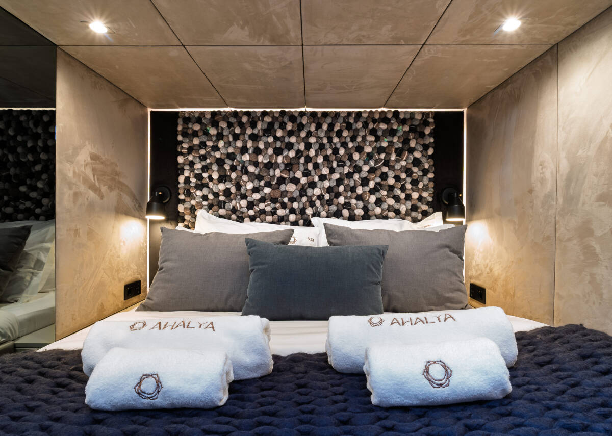 The Sunreef 60 „Ahalya“ offers special comfort with the following equipment features: Bow thruster, Generator, Air Conditioning, Cockpit cushions, Bathing platform, Inverter, Dishwasher.